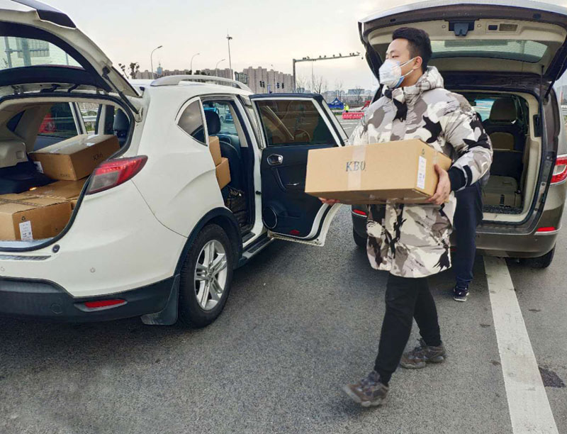 一線捐贈產品做好準備。前一天服務團隊的員工們已經到公司進行了備貨,因疫情防控需要,不能再次離開住所,備貨