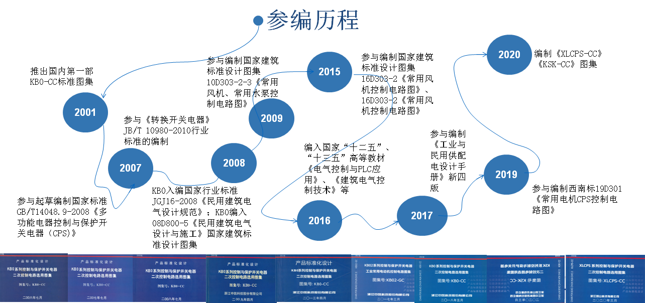 中凱是《控制與保護(hù)開關(guān)電器》GB/T 14048.9-2008國(guó)家標(biāo)準(zhǔn)的主要起草單位,參與了《轉(zhuǎn)換開關(guān)電器》JB/T 10980-2010行業(yè)標(biāo)準(zhǔn)的編制。中凱還參與了國(guó)家建筑標(biāo)準(zhǔn)設(shè)計(jì)圖集16D303-2《常用風(fēng)機(jī)控制電路圖》、16D303-3《常用水泵控制電路圖》標(biāo)準(zhǔn)的編制、《工業(yè)與民用供配電設(shè)計(jì)手冊(cè)》新四版的編制,2008年中凱KB0控制與保護(hù)開關(guān)電器入編中華人民共和國(guó)行業(yè)標(biāo)準(zhǔn)JGJ16-2008《民用建筑電氣設(shè)計(jì)規(guī)范》,上述國(guó)家標(biāo)準(zhǔn)、圖集和規(guī)范的出版發(fā)行,很好地為設(shè)計(jì)研究單位選型應(yīng)用KB0產(chǎn)品提供了方便,為客戶使用產(chǎn)品提供了解決方案,是為客戶提供的增值服務(wù),使中凱KB0產(chǎn)品的應(yīng)用上了新高度。