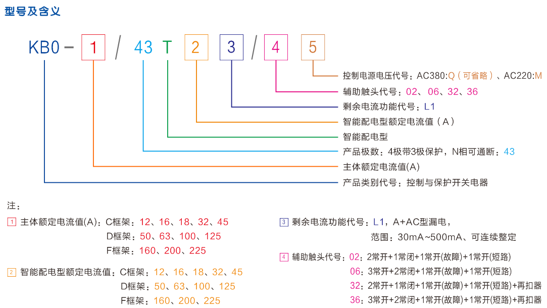 KB0-T/43智能配電型產品具有三相電流、剩余電流、故障記錄等測量功能;熱過載、過流、短路、接地故障、剩余電流等保護功能;開關量輸出等控制功能;起動、停止、復位、測試等按鍵功能;通訊功能、模擬量輸出功能、重合閘功能等。