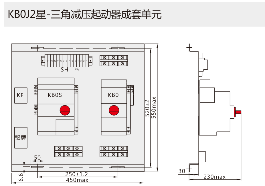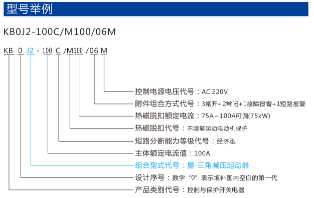 以KB0作為主開關(guān),與適當(dāng)?shù)臅r間繼電器、電氣聯(lián)鎖、機械聯(lián)鎖等附件組合,構(gòu)成Y-△減壓起動器成套單元KB0J2(以KB0-F消防型產(chǎn)品作為主開關(guān),可構(gòu)成消防型Y-△減壓起動器成套單元KB0J2-F, 具有過負荷僅報警不跳閘,短路時報警+跳閘的功能。)可實現(xiàn)110kW及以下的電動機的Y-△減壓起動控制與保護。