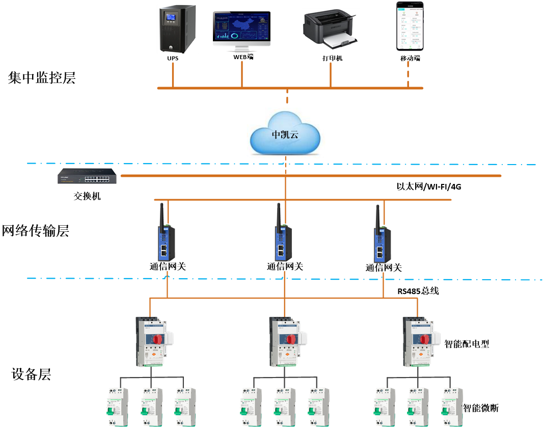 中凱智能配電系統(tǒng)基于中凱云平臺實現(xiàn),不僅可以滿足智能配電的需求,還可以同時實現(xiàn)泛在物聯(lián)的遠(yuǎn)程管理,整合元件、網(wǎng)關(guān)及系統(tǒng),實現(xiàn)全面的智能配電解決,同時具有多種類型的KB0智能配電型控制與保護(hù)開關(guān)電器及ZB3Z智能小型斷路器等智能化元件設(shè)備和系統(tǒng)解決方案,為用戶提供豐富的、個性化的、可定制的智能系統(tǒng)解決方案。